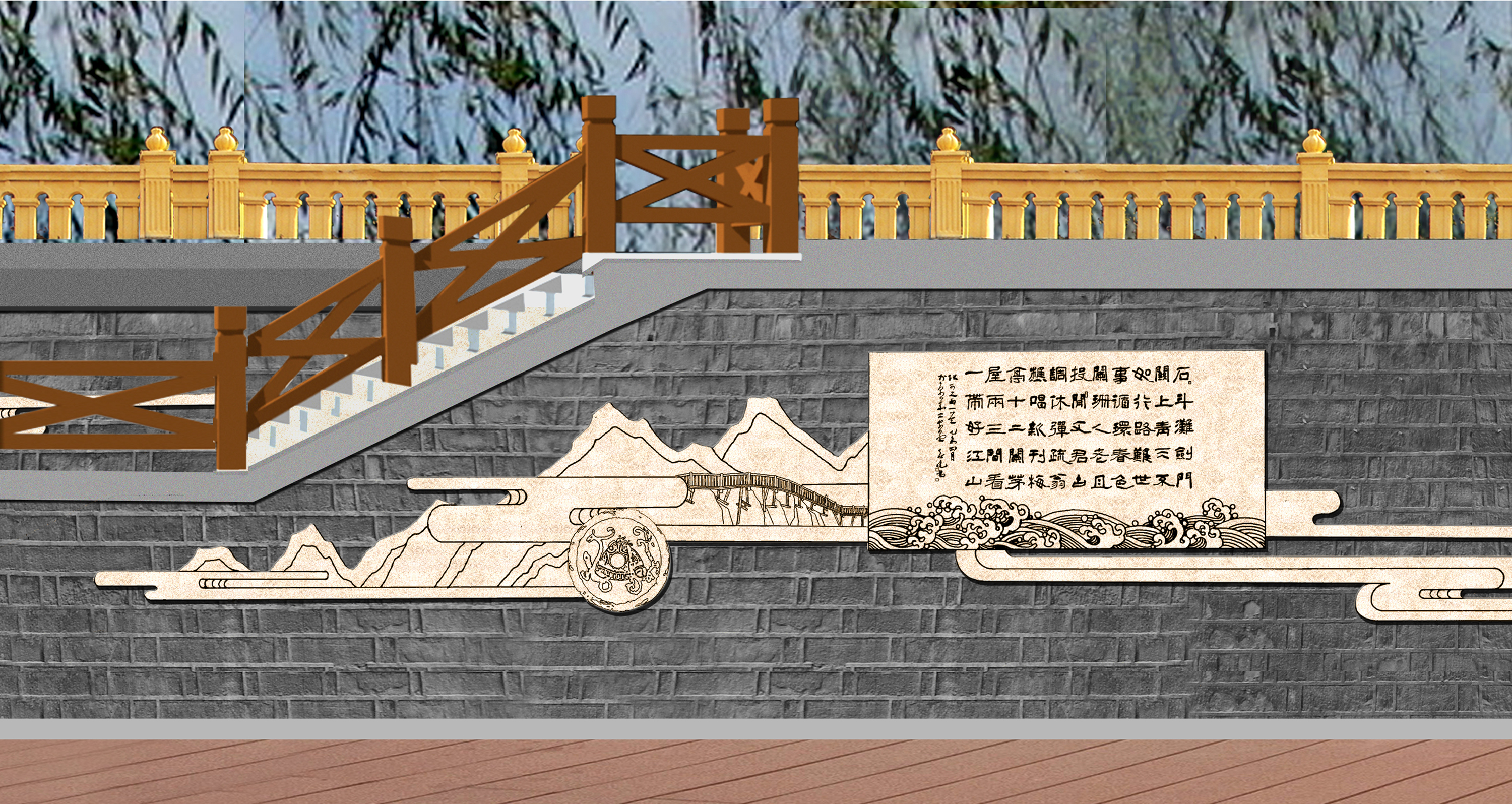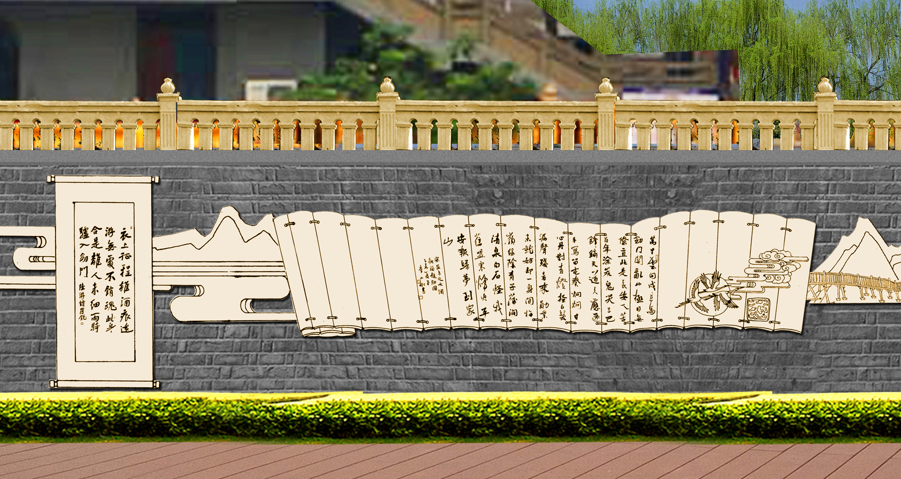 蜀道詩歌大道位于廣元市區(qū)嘉陵江畔,背靠鳳凰山景區(qū),與皇澤寺景區(qū)隔江相望。整個蜀道詩歌大道沿著廣元市區(qū)的嘉陵江,從摩爾天城到將軍橋,途經(jīng)利州西路、打鐵街、大西路、望江樓、小西路、皇澤大橋等,全長約3 公里。通過對蜀道文化的深刻解讀,以廣元“生態(tài)立市、文旅興市”的發(fā)展戰(zhàn)略為理念,充分結(jié)合大唐利州女皇城、國家歷史文化名城創(chuàng)建、嘉陵江生態(tài)文化休閑軸營造文化休閑長廊。設計上以石刻為核心表現(xiàn)手法,同時融合蜀道山川、壁畫、卷軸、碑林、綠植等設計元素,營造出整體統(tǒng)一、厚重,局部多姿多彩的蜀道詩歌大道。