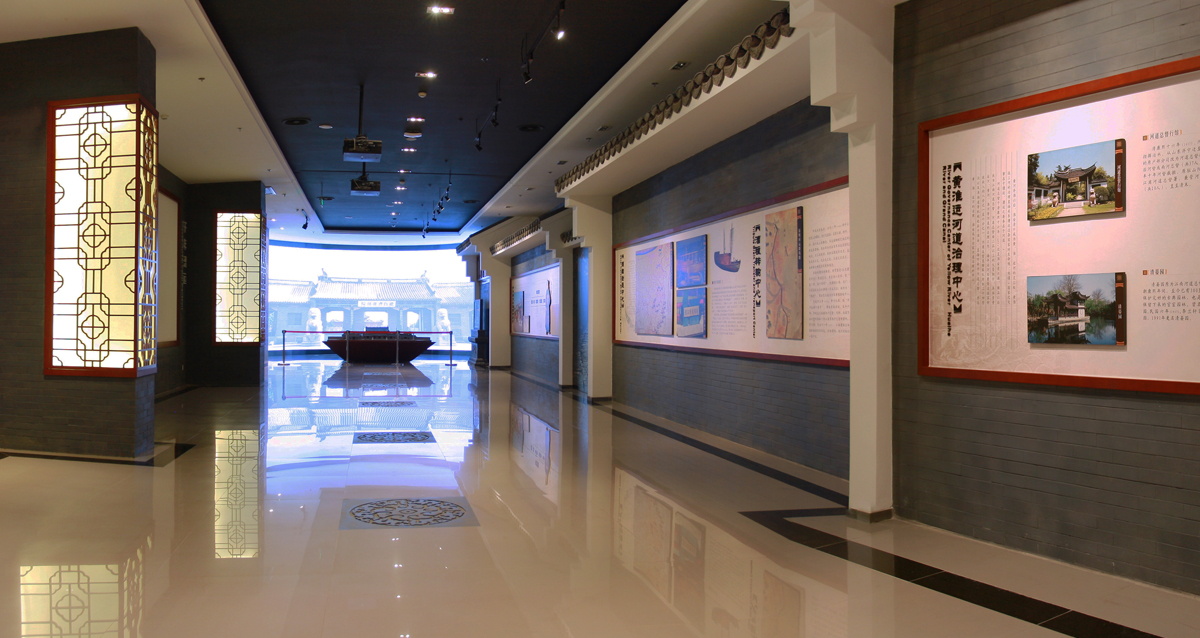 淮安規(guī)劃館是展示淮安城市文化,建設(shè)成就的重要平臺,也是公眾交流的平臺,更是對淮安了解的直接窗口,為了能夠更好體現(xiàn)這一地域性,同時避免城市同類館中似曾相識的錯覺,在整體風(fēng)格上為尋找一條能夠承載這一使命的元素,我們將以“壯麗東南第一州”作為主線,因水而生、因水而興的淮安城,享“壯麗東南第一州”之美譽,因而這是一部具有是文化的歷史城市。