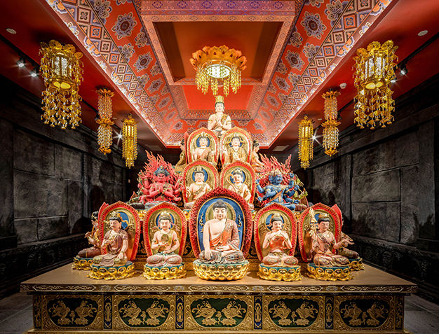 法門寺唐密曼荼羅文化陳列位于法門寺博物館地下一層,展陳面積935平方米,金螳螂文化歷時半年精心打造。法門寺唐密曼荼羅造像藝術和圖像系統的挖掘整理,首次揭開了唐密的神秘面紗,是法門寺歷史文化研究的重大成果。
