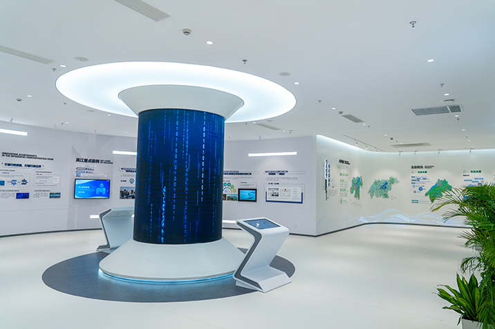 長(zhǎng)三角生態(tài)綠色一體化發(fā)展示范區(qū)吳江區(qū)展示館項(xiàng)目位于蘇州市吳江區(qū)吳江大廈南廣場(chǎng),項(xiàng)目面積1330平方米,為設(shè)計(jì)、采購(gòu)、施工工程總承包。展示長(zhǎng)三角一體化發(fā)展戰(zhàn)略提出以來(lái),吳江地區(qū)的堅(jiān)決貫徹與生動(dòng)實(shí)踐,展現(xiàn)吳江地區(qū)結(jié)合地方實(shí)際的特色工作與顯著成績(jī)。本項(xiàng)目為改建項(xiàng)目,金螳螂文化團(tuán)隊(duì)對(duì)場(chǎng)地進(jìn)行考察,對(duì)現(xiàn)有設(shè)備進(jìn)行拆除及合理應(yīng)用,綜合考慮使用效果、投入成本、展陳更新等多方面要求。
