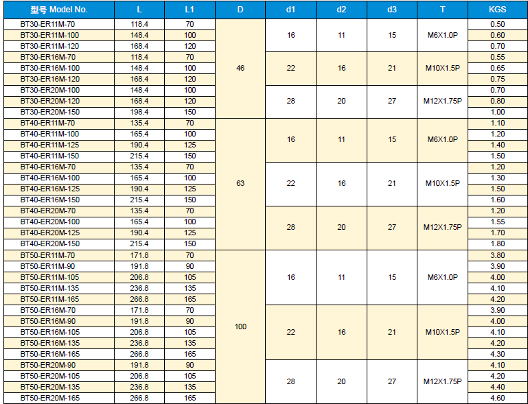 BT/CAT ER M型筒夾刀柄