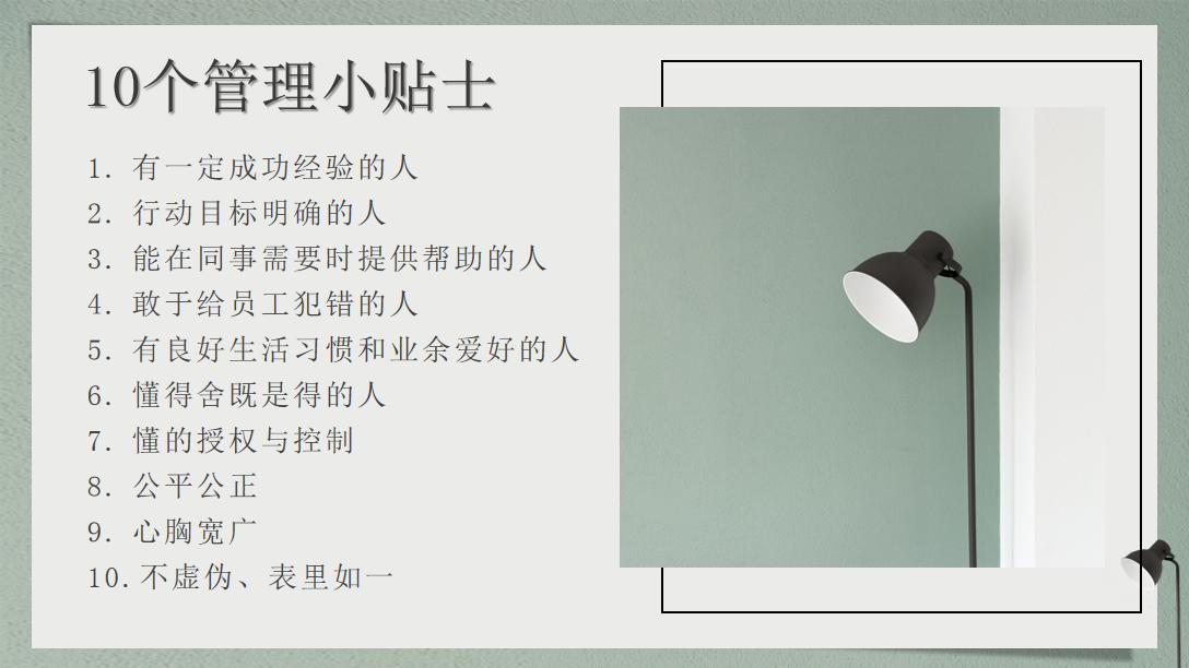 會議最后,楊總分享了《荷花定律》《混的好的人,都有同一個特質》《實現內部協同管理,信任成為重中之重》等一系列管理經驗,并結合自身發展歷程分析了“10個管理小貼士”。