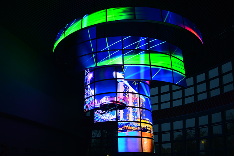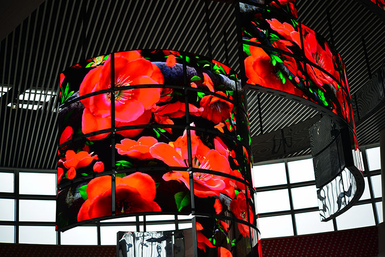 觸屏異形顯示屏由12塊55寸屏無縫拼接,應用4:4:4顏色無損同步顯示技術及強大的后臺發(fā)布管理功能,實現(xiàn)海量4K視頻視頻同步播放。