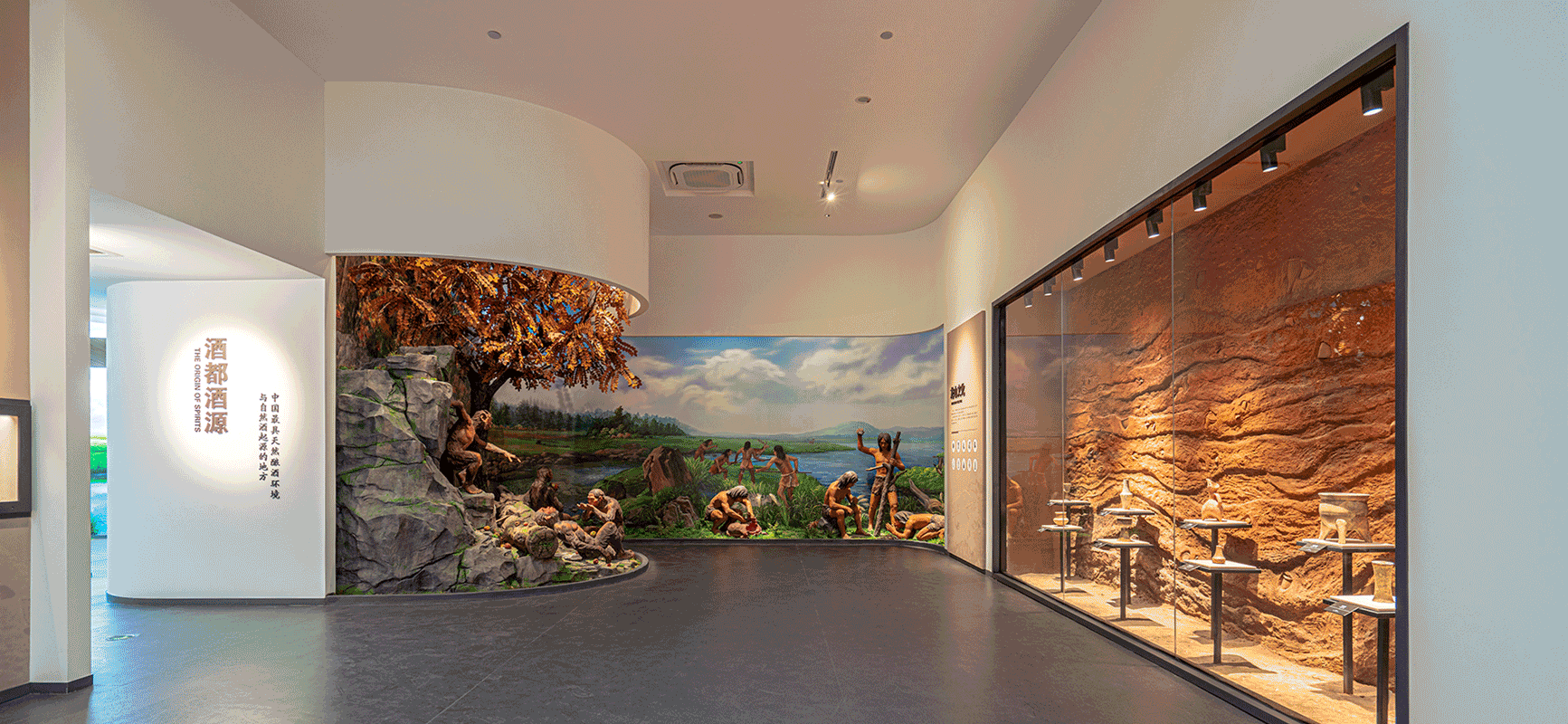 古徐文化源遠流長,西楚雄風千年激蕩,歲月長河中散發出的歷史陳香,孕育出洋河、雙溝兩大中國名酒。金螳螂文化攜手洋河股份,打造集綿柔酒文化、科技新體驗、藝術新空間于一體的洋河股份展覽館,邀您共品洋河美酒之綿柔。 洋河股份位于“第一江山春好處”的酒都宿遷,是中國白酒行業唯一擁有兩個“中國名酒”、兩個“中華老字號”、兩個國家4A級景區的企業。2009年,公司在深交所掛牌上市。 YANGHE 宿遷坐擁“三河兩湖一濕地”,并與法國干邑白蘭地產區、英國蘇格蘭威士忌產區并稱“世界三大濕地名酒產區”。 洋河股份企業展覽館位于江蘇宿遷市洋河鎮中大街,展示主題以“白酒文化”為核心,圍繞“中國酒都、千年酒脈、綿柔鼻祖、時代華章”四個部分展開,深入淺出地展示了中國酒文化與洋河企業的發展歷程與時代情懷。 洋河釀酒起源于隋唐,隆盛于明清,曾入選清朝皇室貢酒,素有“福泉酒海清香美,味占江南第一家”的美譽。雙溝因“下草灣人”、“醉猿化石”的發現,被譽為“中國最具天然釀酒環境與自然酒起源的地方”。 展廳設計之初,金螳螂文化的設計團隊深度研究宿遷當地酒文化,結合企業展覽館的展示訴求,合理規劃展館功能分區。貫穿全館的曲線造型,寓意著洋河酒之綿柔,在提升展廳空間感的同時串聯起不同區域的脈絡。 穿越“夢想之門” ,沉浸感知洋河人的時代新夢, 于理性的企業空間營造夢幻的視覺氛圍。 “雙溝醉猿”與“下草灣人”、明清時期酒業市井繁華、乾隆頌贊……這些緊扣展覽敘事線索的場景復原,不僅僅豐富了展廳內容,而且能夠引導訪客的參觀情緒,起到襯托主題的作用。 金螳螂集團以施工品質保證著稱,金螳螂文化作為旗下專注文博展示、文旅融合版塊的獨立子公司,以專業設計與優質施工為博物館、規劃館、企業館、科技館、黨建館、文旅景區、主題樂園等各類客戶提供定制化服務,致力于“讓設計更有文化、讓空間更有故事”。