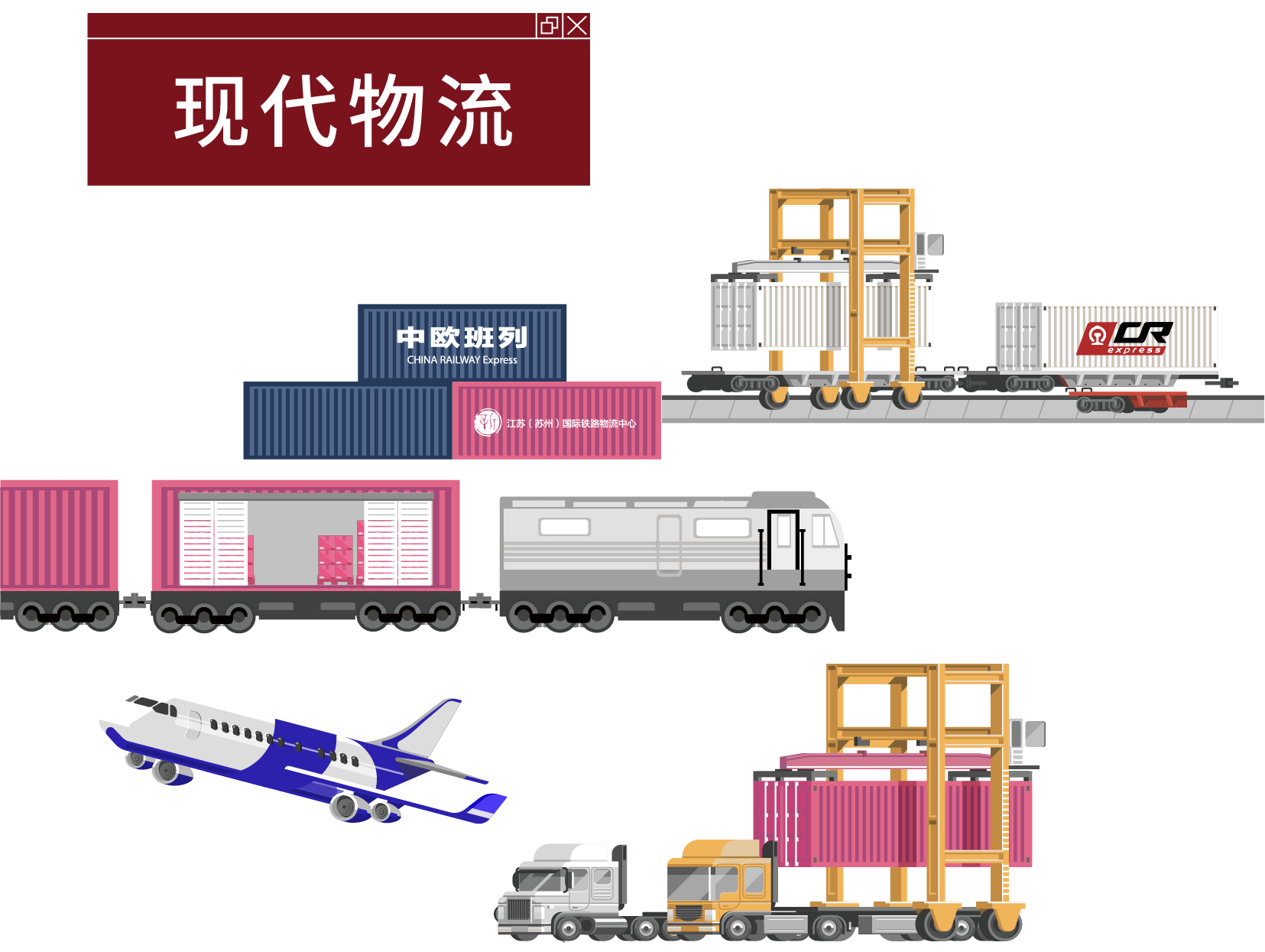 在介紹現代物流業版塊,運用滑軌移動屏清晰闡釋企業的業務構成。