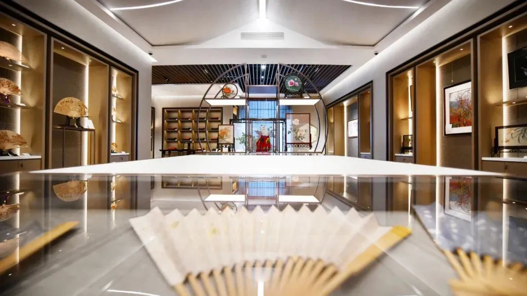 蘇作館在原來12個門類的基礎上,增加了民族樂器、御窯金磚、磚雕、手工旗袍等8個門類、增加了125件藝術精品,并與40多家蘇州本土非遺品牌進行了合作,在衍生品區增加了生活藝術品2000多件。